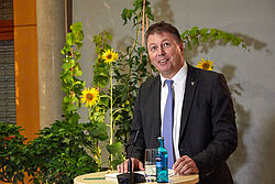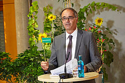 Auch Prof. Dr. Alexander von Birgelen, Vizepräsident Lehre der Hochschule Geisenheim, ging auf die veränderten Lehr- und Arbeitsbedingungen in einer zunehmend digitalen Welt ein. „Wir Lehrende wünschen uns, dass Sie Ihr Erlerntes dazu nutzen, als kritische, reflektierende und urteilsfreudige Fachleute Ihre Disziplin aktiv mitzugestalten“, gab er den Absolventinnen und Absolventen darüber hinaus mit auf den Weg. Er rief sie dazu auf, mit ihrem Handeln aktiv „zur Gestaltung einer gemeinsamen lebenswerten Zukunft“ beizutragen.