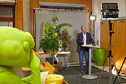 Hochschulpräsident Prof. Dr. Hans Reiner Schultz sprach von einem „Studienabschluss, wie er hoffentlich einmalig bleibt, mit einem aufreibenden letzten Semester“ und verwies auf die besondere Situation der Absolventinnen und Absolventen in Zeiten der Corona-Pandemie. Der gesamten Hochschulgemeinschaft fehle das, was Geisenheim ausmache: das Miteinander, die direkten Kontakte. Er schloss deshalb mit dem Wunsch: „Ich hoffe, wir sehen uns live wieder!“