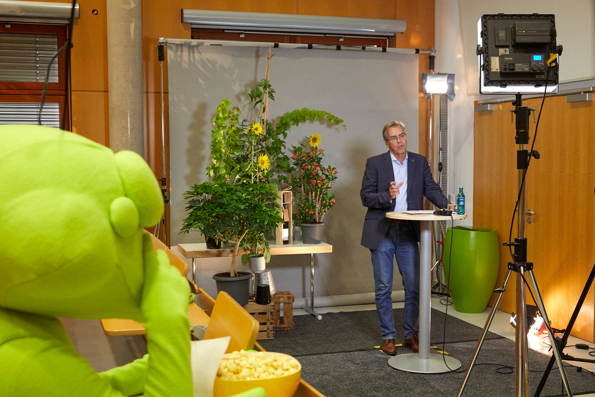 Robert Lönarz, Präsident des Alumniverbandes, führte als Moderator live aus dem Geisenheimer Uni-Keller durch das Programm. Er betonte die große Bedeutung des Geisenheimer Zugehörigkeitsgefühls und des Netzwerks gerade angesichts der Krise und lud die frischgebackenen Absolventinnen und Absolventen ein, der Hochschule auch über das Studium hinaus verbunden zu bleiben.