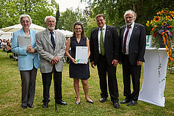Preisträgerin Sofia Bustaggi mit Prof. Karl Bayer (2.v.l) und ihren Honoratorinnen und Honoratoren. © Hochschule Geisenheim / Winfried Schönbach