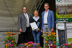 Jannette Goldmann, Trägerin des Studienpreises Landschaftsarchitektur, mit Prof. Dr. Andreas Thon (l.) und Prof. Dr. Eckhard Jedicke. © Hochschule Geisenheim / Winfried Schönbach