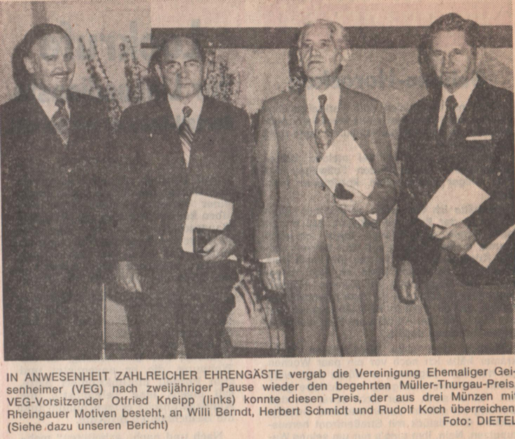 Aus Anlass ihres 75-jährigen Bestehens im Jahre 1969 gedenkt die VEG dieses Mannes in einer Zeit, in der sie mit Sorge die Bestrebung sieht, welche die Fortführung und Weiterentwicklung von Forschung und Lehre in Geisenheim in Frage stellen und somit die "Geisenheimer Tradition" gefährden.