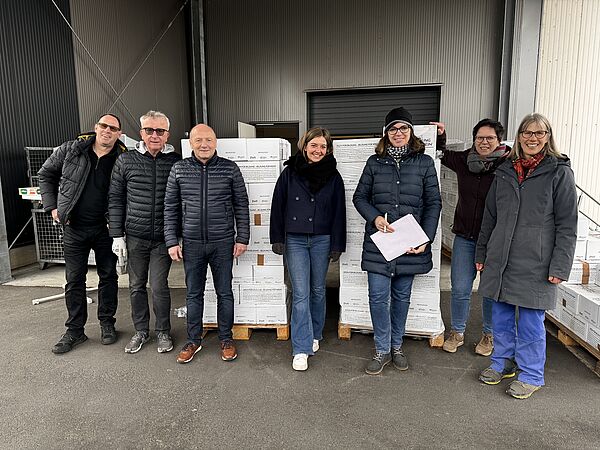 Schon nach einer Stunde konnte das Team Ruth Lehnart, Wiebke Reymann, Laura Nelles, Simone Böhm und Logisiker Martin Volz vom Getränkemarkt Volz in Rüdesheim, Prof. Dr. phil. Walid Hafezi und Robert Lönarz die Rampe des LKWs schließen und den sonnigen Heimweg antreten. Vielen Dank an alle Käufer und viel Spass mit den Weinen!