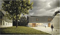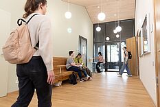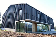 Der Bau liegt als kompaktes, 2-geschossiges Gebäude oberhalb der Von-Lade-Straße und der rechtsrheinischen Bahnlinie zwischen Koblenz und Wiesbaden. Mit einem einfachen Satteldach ist dieser städtebaulich eine logische Ergänzung des gewachsenen Campus. Der Baukörper hat einen rechteckigen Grundriss mit ca. 19x26m Kantenlänge.