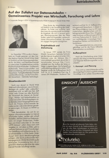 Geisenheim - Das Studium der Studienrichtung Weinbau & Oenologie und Getränketechnologie an der Fachhochschule Wiesbaden am Standort Geisenheim endet mit der Anfertigung einer Diplomarbeit. Diese Arbeiten, zu allen Themen von weinbaulichen, oenologischen, getränketechnologischen und betriebswirtschaftlichen Fragestellungen, beinhalten wertvolles Wissen, welches bislang in den Regalen des Fachbereichs Weinbau und Getränketechnologie sorgfältig bewahrt, aber für die breite Fachwelt nur sehr schwer greifbar war. Lediglich in der oenologischen Fachzeitschrift des Bund Deutscher Oenologen e.V. "Der Oenologe" wurde über Jahre hinweg durch das alleinige Engagement des Geschäftsführers Dipl.-Ing. J. Eisenbarth (s. Bild), eine Kurzfassung veröffentlicht. Auf dieser Basis entstand das Projekt "Diploma", welches das Ziel hatte, unter Integration der neuen Medien, wie PC und Internet, das wertvolle Wissen einer weltweiten Fachwelt zur Verfügung zu stellen. Das Projekt wird koordiniert und durchgeführt durch die beiden Weinbauingenieure Andreas Binzel und Robert Lönarz. Unter Mithilfe der Hauptbibliothek der Forschungsanstalt Geisenheim, in Person von Frau Muth, als Bibliotheksleiterin, Herrn Kirn (s.Bild), als maßgeblichen Operator der ALLEGROâ-Bibliotheks-Datenbank und der gestalterischen und inhaltlichen Bearbeitung durch Frau Dipl.-Ing. Corinna Schneider, konnte das Projekt in nur 6 Monaten konzeptioniert und realisiert werden.