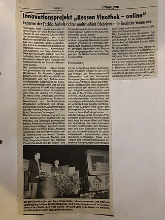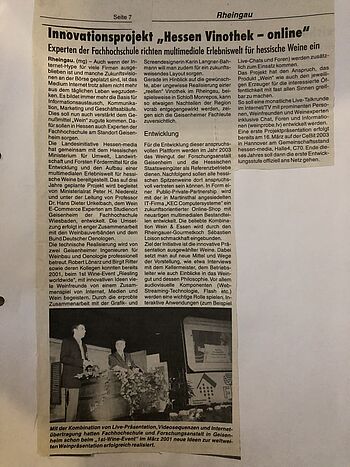 Mit dem Start einer weltweit recherchierbaren Wissensdatenbank besitzt der Studienstandort Geisenheim mit seiner weltweit beachteten Kompetenz auf dem Gebiet von Weinbau und Getränketechnologie ein weiteres "Highlight".