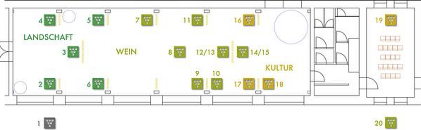 Ein Weinkino mit einer Präsentation von Weinfilmen in Endlosschleife, sowie die Präsentation von Moselweinen in der Vinothek runden die Gesamtpräsentation ab.