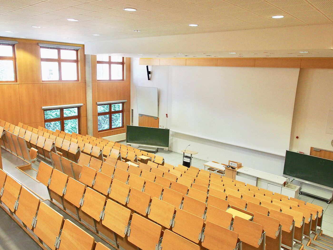 | Besonderheiten | Licht dimmbar, Medienkabine mit Möglichkeit zur Videoaufnahme, Chemiepult mit Abluft, Waschbecken und Gasanschlüssen, Mikrofonanlage. |