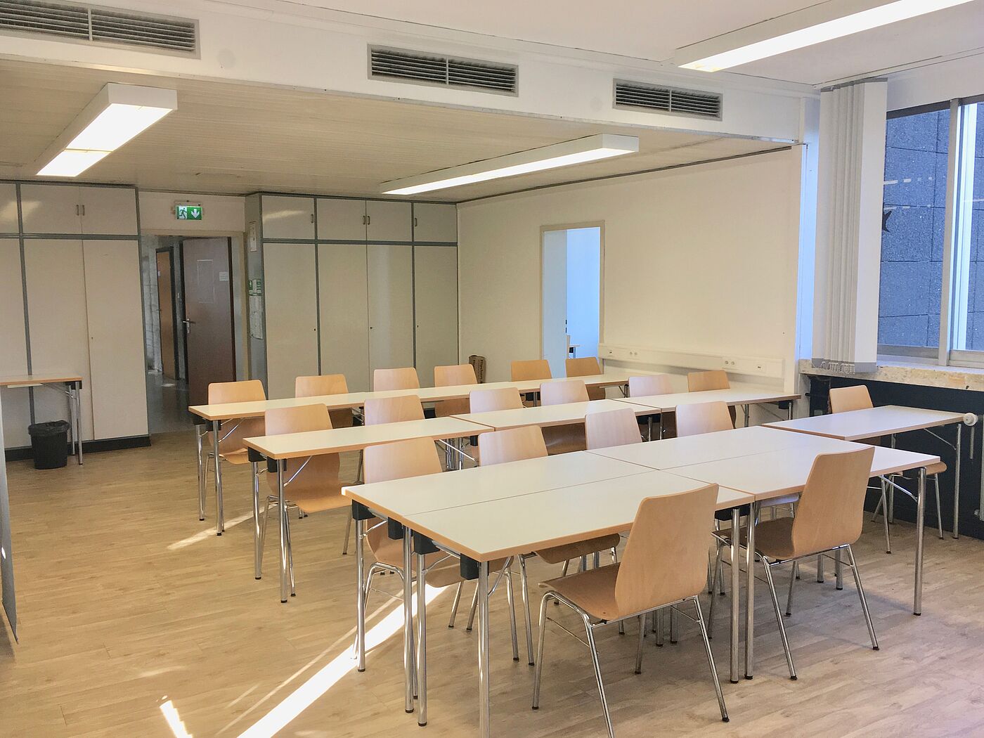 | Besonderheiten | Der Raum verfügt über einen kleinen Seitenraum zur ungestörten Gruppenarbeit. | |