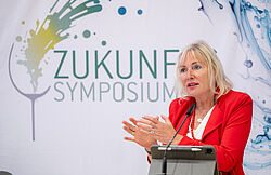 Eröffnet wurde das neue Format, das die Geisenheimer Masterstudenten Julius Coenen und Simon Lönarz entwickelt haben, von Hessens Digitalministerin Prof. Dr. Kristina Sinemus und Hochschulpräsident Prof. Dr. Hans Reiner Schultz. „Roboter und Drohnen im Weinberg, Sensoren im Gärtank, QR-Codes auf e-Etiketten: Die Möglichkeiten der digitalen Technologien und Künstlichen Intelligenz machen auch die Landwirtschaft produktiver, effizienter und ressourcenschonender. Unser Wohlstand und unsere Zukunftsfähigkeit hängen davon ab, wie wir die Digitalisierung gestalten. Hessen hat dafür eine KI-Zukunftsagenda erarbeitet und setzt diese gerade um“, so Digitalministerin Prof. Dr. Kristina Sinemus in ihrem Impulsvortrag. „Der Erwerb neuer Kompetenzen und neue Formen des Kompetenzerwerbs in der Ausbildung der Fach- und Führungskräfte von morgen spielen dabei eine entscheidende Rolle“, betonte die Digitalministerin. „Ich freue mich deshalb sehr, Teil des Austauschs beim 1. Geisenheimer Zukunftssymposium zu sein.“