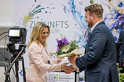Den Abschluss bildete die Übergabe an die nächste Studierendengeneration mit Prof. Dr. Mirjam Hey, Vizepräsidentin Lehre der Hochschule Geisenheim, und VEG-Präsident Robert Lönarz. Das Format „Geisenheimer Zukunftssymposium“ soll jährlich wiederholt und auch weiterhin maßgeblich von Studierenden geplant werden. Den symbolischen Staffelstab dafür übernahm Teréze Urbáne, Studentin des englischsprachigen Bachelorstudiengangs International Wine Business.