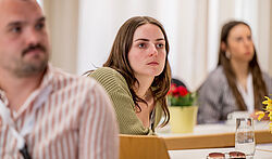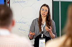 Der Samstag (3.) stand dann im Zeichen des professionellen Austauschs von Studierenden mit den Unternehmen. In vier Sessions setzten sie sich in Vorträgen und Workshops mit aktuellen Fragestellungen der Gäste auseinander: Künstliche Intelligenz und App-Entwicklung waren Schwerpunkte der Session mit FBS Solution. Beim Austausch mit Vertreterinnen und Vertretern der skandinavischen Anora Group stand die Sustainability Roadmap 2030 des Wein- und Spirituosenhauses im Blickpunkt. Nestlé bot einen Workshop unter dem Titel „Food Innovations – Verpackung ohne Plastik“ an, mit Mack & Schühle erarbeiteten die Teilnehmenden Vermarktungsstrategien für die GenZ.