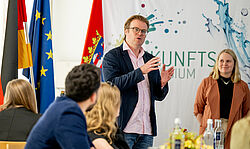 Konzeptioniert wurde das Forum von den beiden Studenten des Studiengangs Weinbau, Önologie und Weinwirtschaft (M.Sc.) mit Unterstützung von Prof. Dr. Jon Hanf, Professor für International Marketing Management, und dem Geisenheimer Alumniverband, der VEG – Geisenheim Alumni Association e. V.. „Das Zukunftssymposium schafft einen interaktiven Raum, in dem sich Studierende und Unternehmen austauschen, Impulse aus Bildung, Praxis und Forschung zusammendenken und weiterentwickeln können“, so die Veranstalter. Durch die studentische Organisation solle besonders die Perspektive der künftigen Fach- und Führungskräfte Berücksichtigung finden.