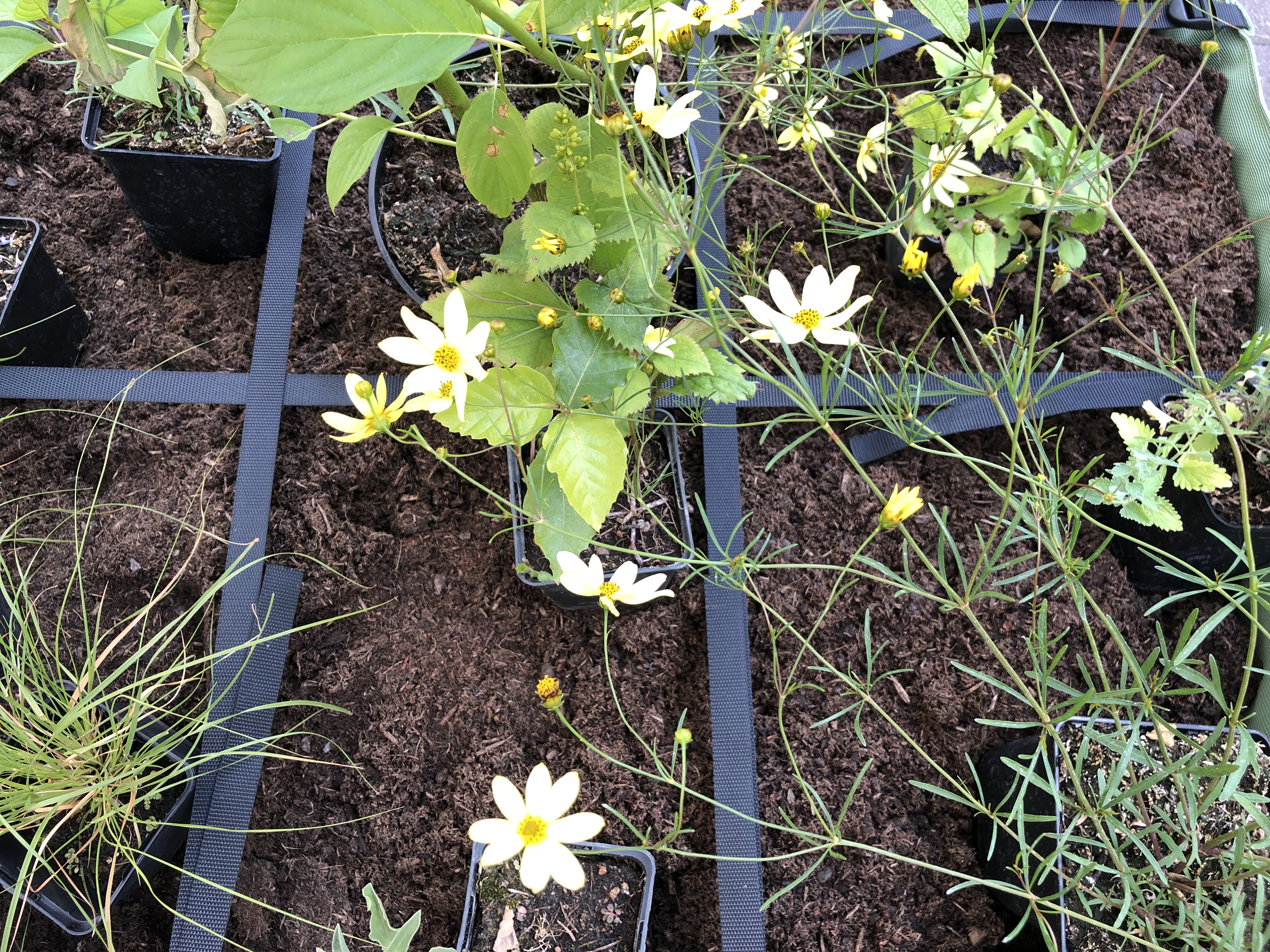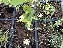Die Bepflanzung besteht aus einer Mischung aus Stauden, Gräsern und Gehölzen, die zu jeder Jahreszeit einen Blickfang darstellt. Das Grundgerüst bilden dabei zwei Hartriegel-Arten mit ihrer dekorativen farbigen Rinde in Grün-Gelb und Rot. Daneben wiegen sich unterschiedliche luftige Gräserarten und blühende Stauden im Wind. Die Staudenpflanzung aus Schönauge, Berg-Aster, Katzenminze und Goldrute erstrahlt in den Sommermonaten in Blau, Violett und Gelb.