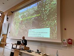Die Vorträge der Tagung beleuchteten vielfältige Themen aus Wissenschaft und Praxis. Ihren reichen Erfahrungsschatz zum Thema „Wurzelwachstum von Bäumen“ teilte Dr. Monika Sobotik, zuletzt Leiterin des Pflanzensoziologischen Institutes im österreichischen Bad Goisern, mit den Teilnehmenden der Tagung. Danach referierte Dr. Katharina Weltecke vom Institut Baum & Boden aus Bad Arolsen über den richtigen Einbau von Baumsubstraten und dessen Kontrolle.