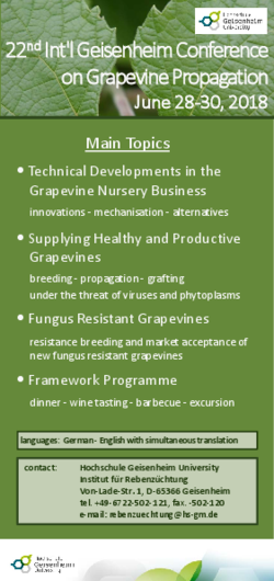 Für weitere Informationen wenden sich Interessierte bitte an das Institut für Rebenzüchtung der Hochschule Geisenheim University, Von-Lade-Str. 1, 65366 Geisenheim, Tel. 06722-502121, Fax. 06722-502120, rebenzuechtung@hs-gm.de. https://veranstaltungen.hs-geisenheim.de/event/48/show/