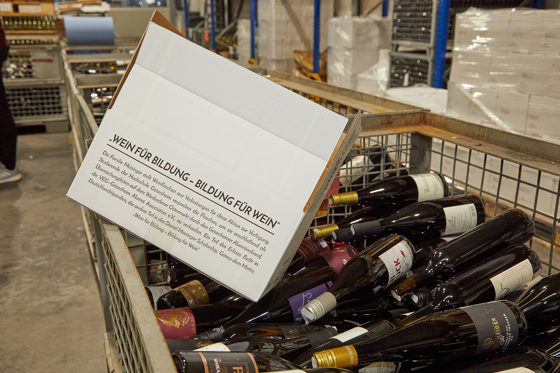 Die Einnahmen aus dem Verkauf fließen zu gleichen Teilen in das Daniel-Meininger-Scholarship und das Deutschlandstipendium. Hinter dem Daniel-Meininger-Scholarship steht der bekannte Wein- und Getränkeverlag Meininger aus Neustadt an der Weinstraße. Zu Ehren seines Urgroßvaters Daniel Meininger, der mit einer Weinzeitschrift den Verlag im Jahr 1903 gründete, benannte Christoph Meininger dieses Stipendium. Gefördert werden Studierende der Geisenheimer Studiengänge Weinbau und Oenologie (B.Sc.) sowie Internationale Weinwirtschaft (B.Sc.), die sich im Ausland, insbesondere in Praktika, weiterbilden wollen.