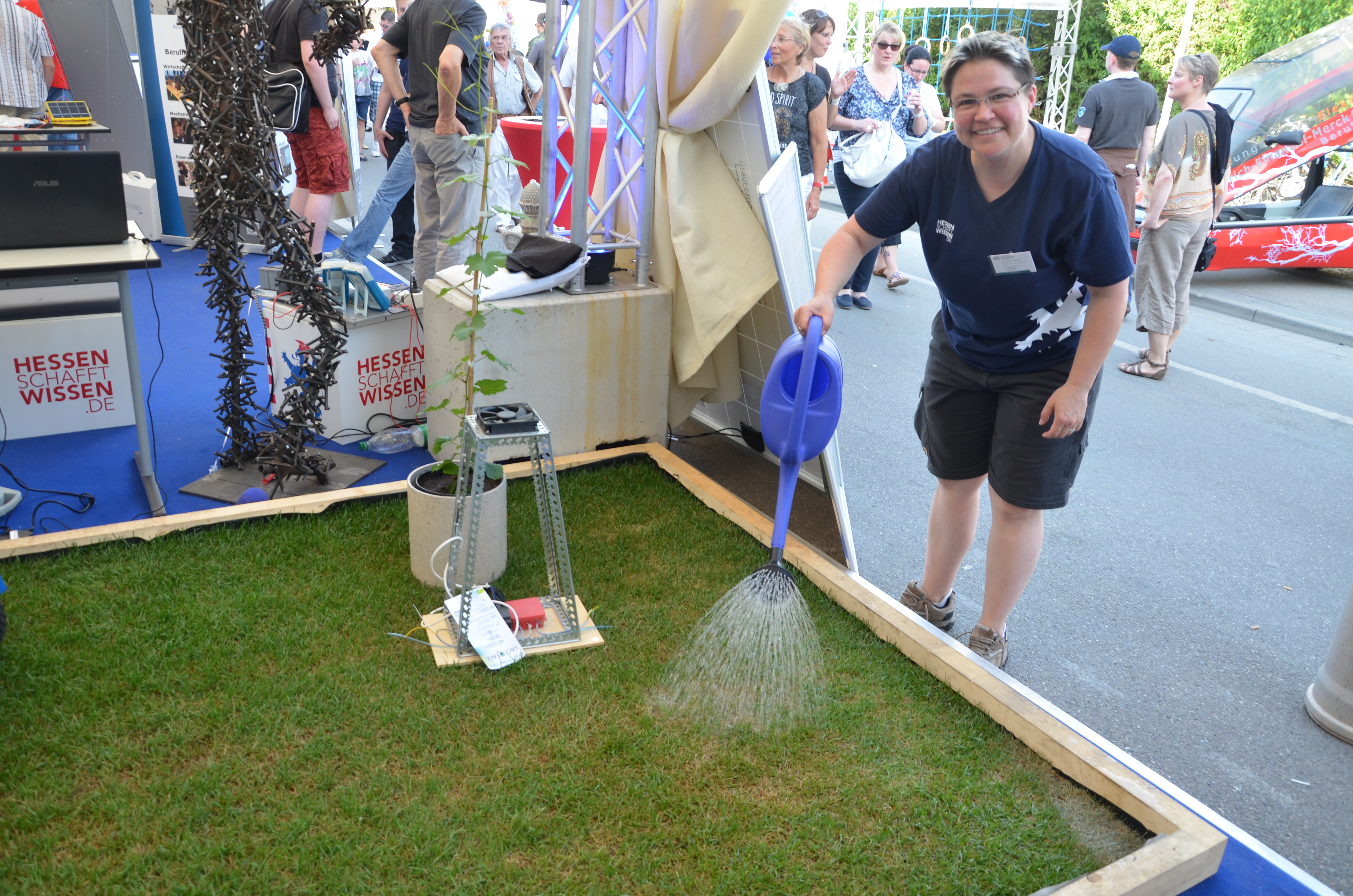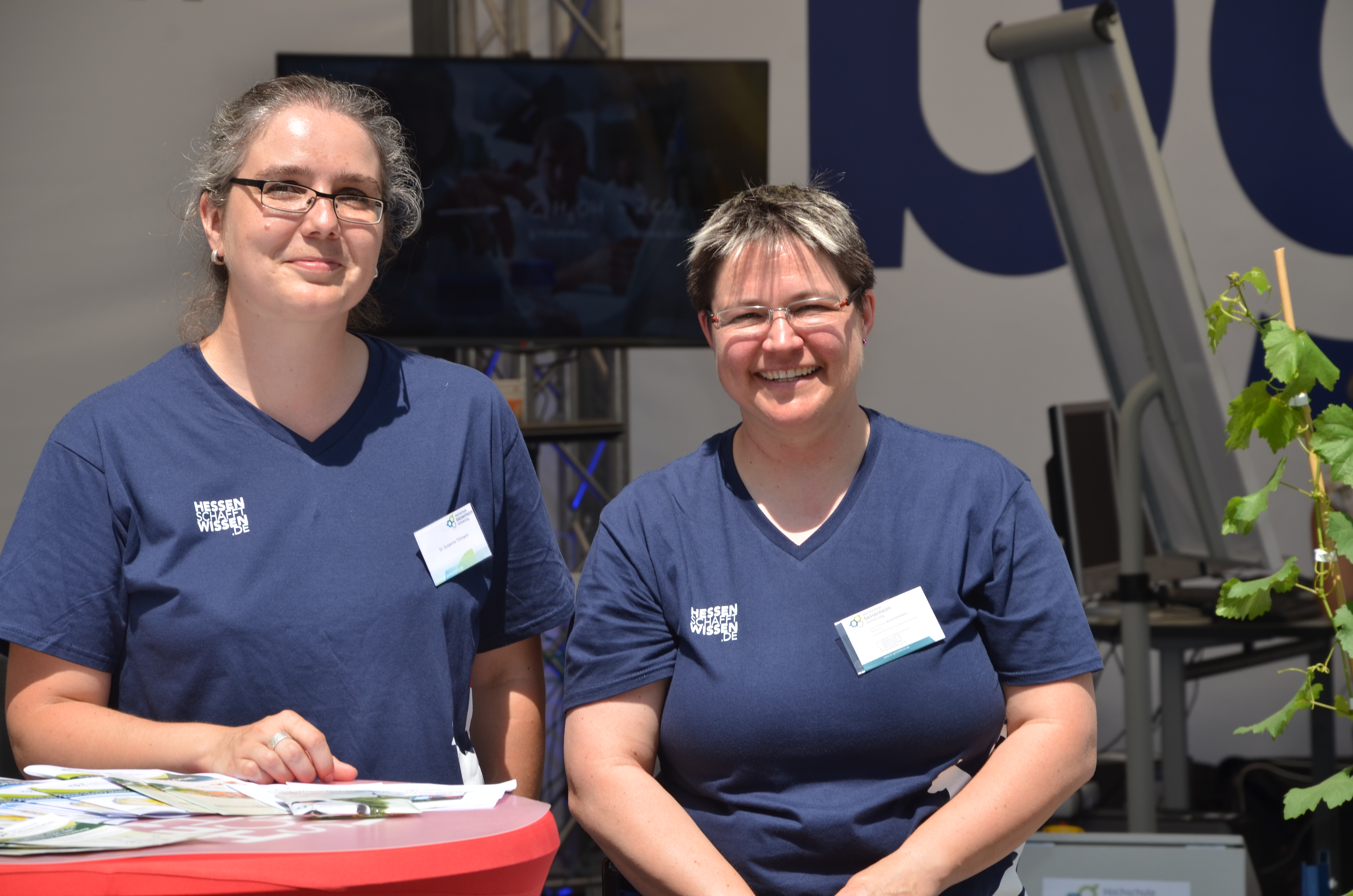 Hohe Temperaturen, gute Resonanz – auch mitten in der Woche riss der Besucherstrom auf dem Hessentag in Bensheim nicht ab. Und die Hochschule Geisenheim – mittendrin im Geschehen am Gemeinschaftsstand von „Hessen schafft Wissen“. Hier werden nach wie vor der Wissensdurst gelöscht, Fragen beantwortet Rasensamen verteilt und viele Informationen rund um die Hochschule erteilt – das Geisenheimer Team hat alle Hände voll zu tun.
