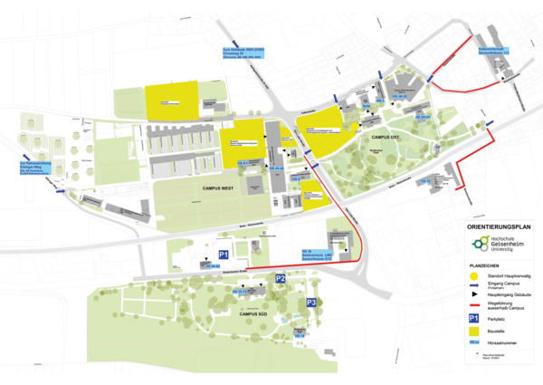 Bitte beachten Sie den wegen umfangreicher Baumaßnahmen auf dem Campus aktuell geltenden Orientierungsplan. Die schraffierten Baustellenbereiche dürfen nicht betreten werden. Mit einem Klick auf das Bild können Sie den Orientierungsplan als hochauflösendes PDF öffnen. Alle Informationen zum Thema Bau finden Sie hier.