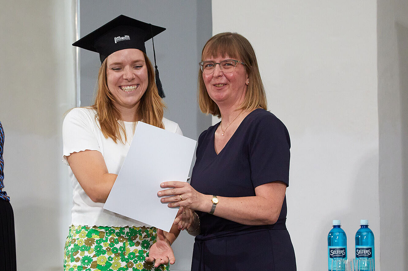 Charlotte Klonus mit Studiengangsleiterin Prof. Dr. Simone Loos-Theisen.