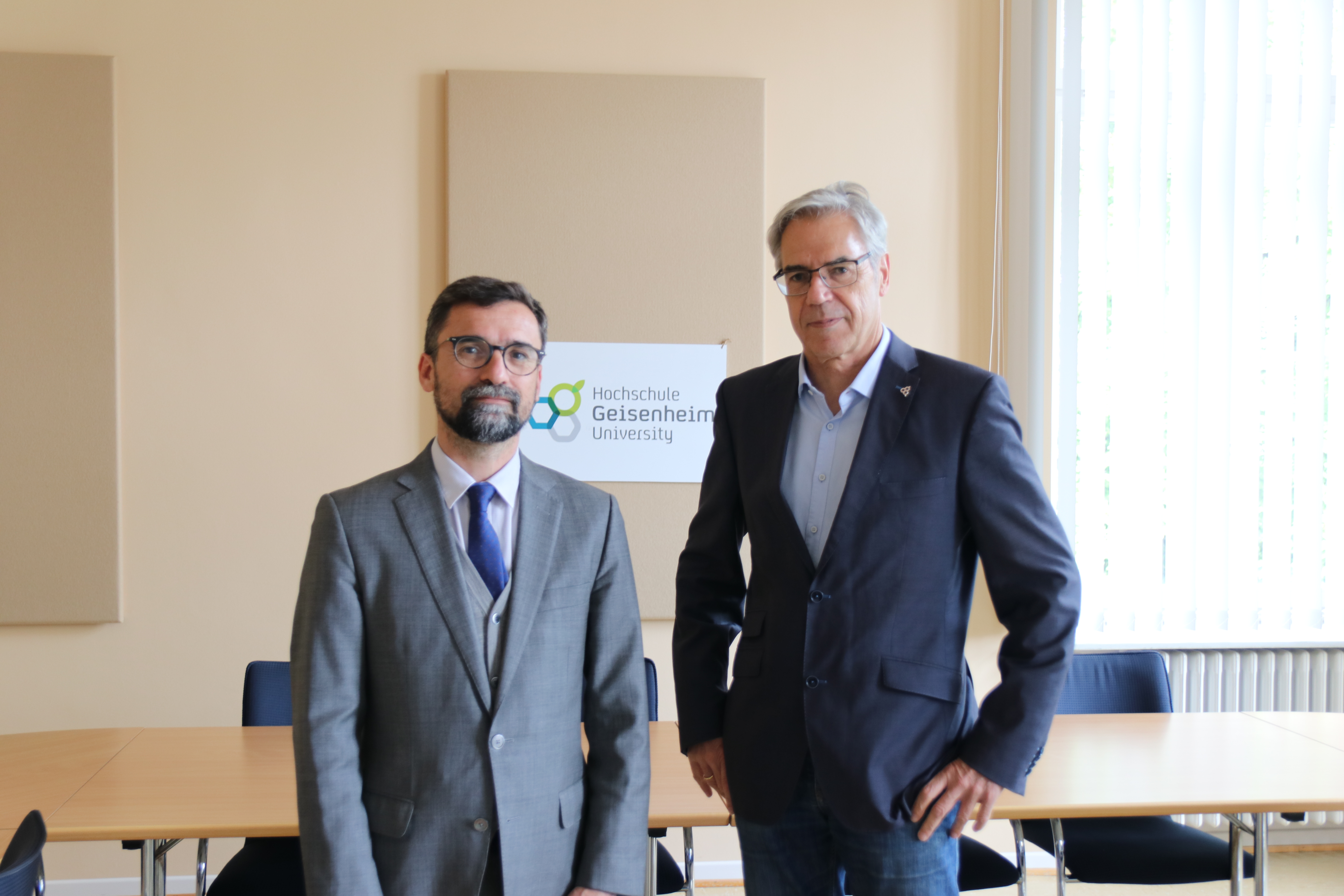 Begrüßt wurde der Ehrengast zunächst durch den Hochschulpräsidenten Prof. Dr. Hans Reiner Schultz. Im gemeinsamen Gespräch tauschten die beiden sich zu einer Vielzahl von bestehenden Verbindungen im Bereich Weinbau aus.