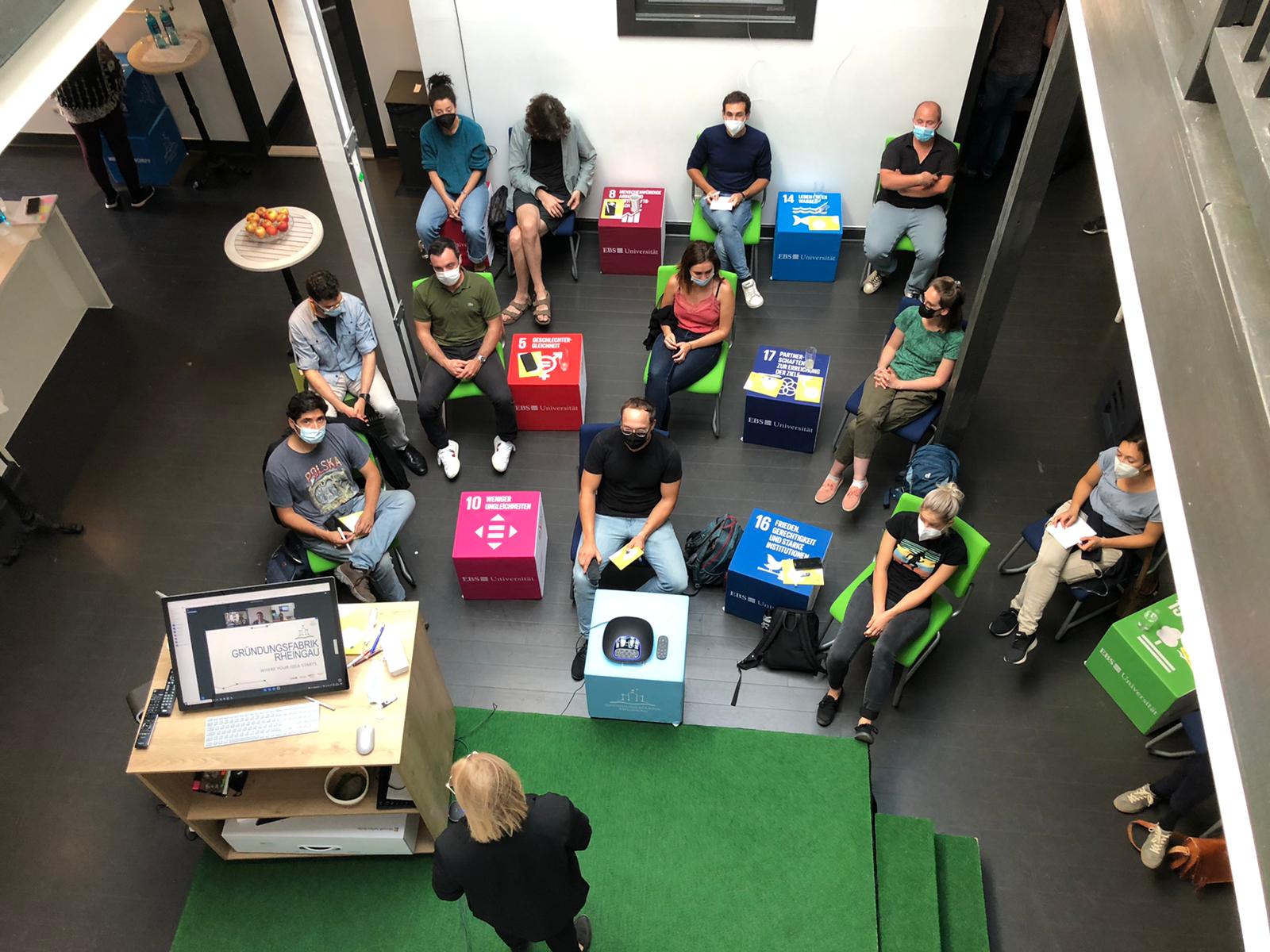 Weitere Highlights der Woche waren zwei live Events. Bei einem Filmabend im Hörsaal der Hochschule Geisenheim mit dem Dokumentarfilm „Taste the Waste“ konnten sich die Teilnehmenden über alle, teilweise verstörenden Facetten der Lebensmittelverschwendung informieren und im Anschluss mit dem Regisseur Valentin Thurn auch mögliche Ansätze der nachhaltigen Verwendung von Lebensmitteln diskutieren. Am Donnerstagnachmittag bot sich bei einem Treffen in der Gründungsfabrik Rheingau in Geisenheim eine weitere Gelegenheit zum Netzwerken und Austauschen. Hier wurden von der Gründungsfabrik Rheingau und dem Startupnetzwerk Mittelhessen StartMiUp geförderte Startups vorgestellt, welche sich durch ihre besonders nachhaltigen Konzepte auszeichnen.