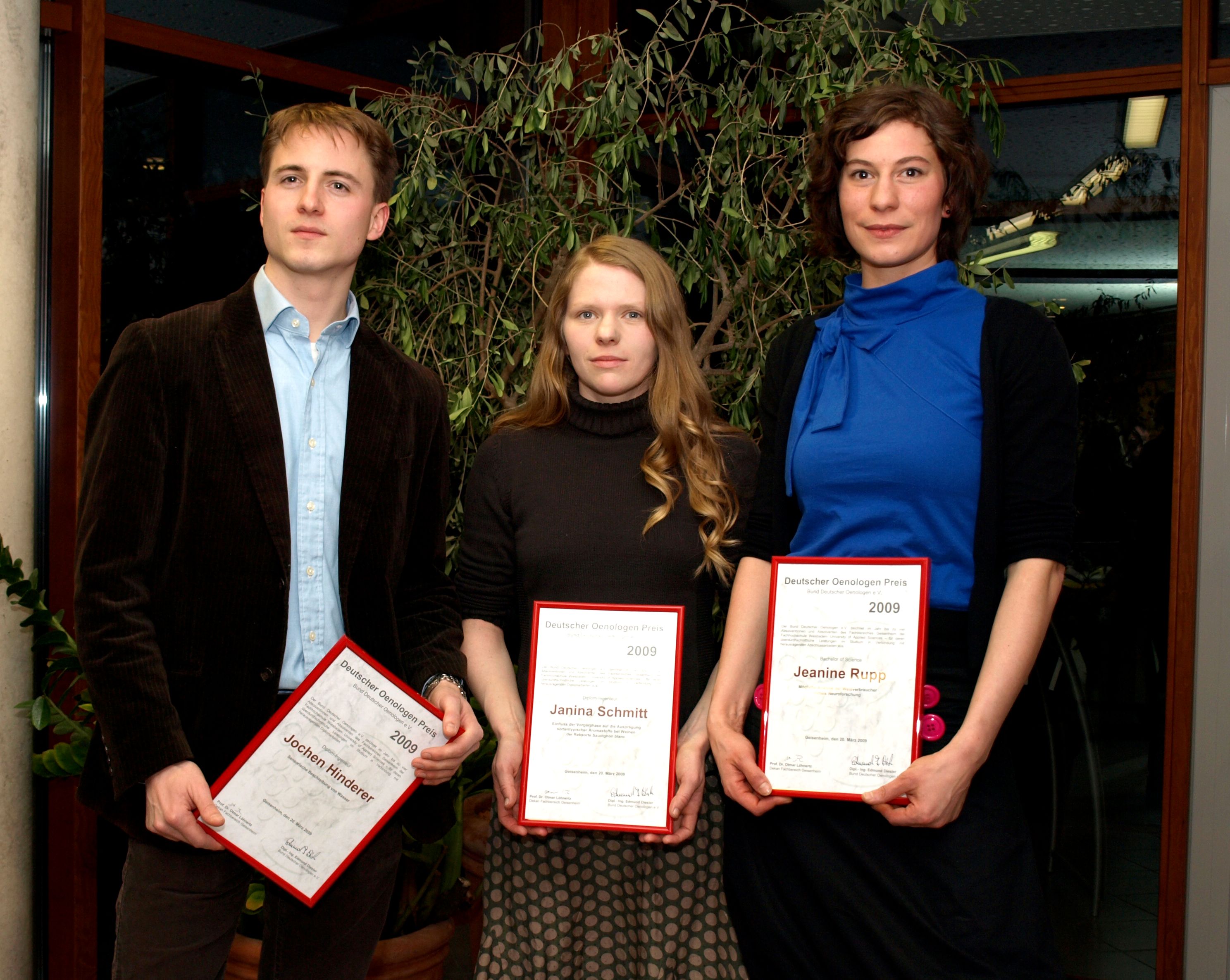 Anlässlich der diesjährigen Fachtagung des Deutschen Oenologenverbandes am 23. März 2009 wurde der Deutsche Oenologenpreis an junge Oenologen verliehen.