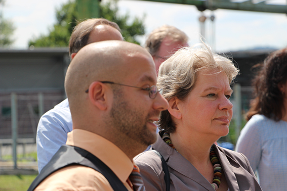 Biodiversität im Weinberg, die Umsetzung der Wasserrahmenrichtlinie im Rheingau, ökologischer Weinbau, nachhaltige Produktion von Zierpflanzen und der Einsatz von UV-C-Strahlung zur Verminderung des Schadaufkommens im Wein- und Obstbau: Dr. Beatrix Tappeser, Staatssekretärin im Hessischen Ministerium für Umwelt, Klimaschutz, Landwirtschaft und Verbraucherschutz, hat sich auf ihrer Sommertour am Mittwoch, 27. Juli 2016, auch über die Arbeit in den verschiedenen Instituten der Hochschule Geisenheim informiert.