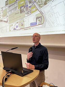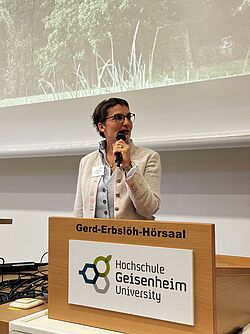 So konnten lernten über 40 Kinder in der etabliertenKinderuni-Veranstaltungsreihe den Anbau, die Verarbeitung und die Sensorik von Äpfeln näher kennen. Im neuen Lebensmittellogistik- und Nachhaltigkeitsgebäude der Hochschule Geisenheim stellte zudem Prof. Dr. Moritz Wagner, Professur für nachhaltigen Ressourceneinsatz und Stoffstromanalysen bei Sonderkulturen am Institut für angewandte Ökologie, „Nachhaltigkeitsaspekte im Weinbau" vor, bevor Prof. Dr. Andreas Holzapfel, Leiter des Institut für Frischproduktelogistik, den Gästen die Einrichtungen der Lebensmittellogistik und Frischproduktelogistik zeigte. Im Anschluss daran konnten interessierte Jugendliche und alle, die sich jung fühlten, in einem Escape Game mehr über biologische Vielfalt erfahren. Parallel dazu fand zudem ein Vortrag zur Bürgerbeteiligung für Windkraft in Heidenrod statt, in dem Udo Zindel als Vertreter der Projektentwicklungsgesellschaft "Windenergiepark Heidenrod GmbH" das Heidenroder Windparkmodel vorstellte.