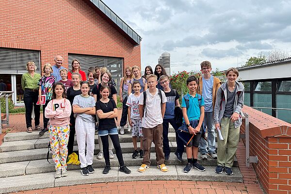Innerhalb ihrer Projektwochen „Nachhaltigkeit“ besuchte am 18. September 2023 die Klasse 7e der Schule für Hochbegabtenförderung/Internationale Schule (hbf/is) des Otto-Schott-Gymnasiums (OSG) aus Mainz die Hochschule Geisenheim. Fächerübergreifend waren die Schülerinnen und Schüler bereits vorab in den Fächern Geographie, Biologie und Physik auf das Thema vorbereitet worden. Zur Begrüßung führte Prof. Dr. Simone Loose, Leiterin des Instituts für Wein- und Getränkewirtschaft, die Gruppe in den Standort Geisenheim und die Bedeutung der Weinwirtschaft ein.