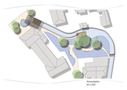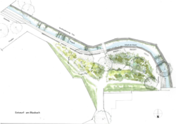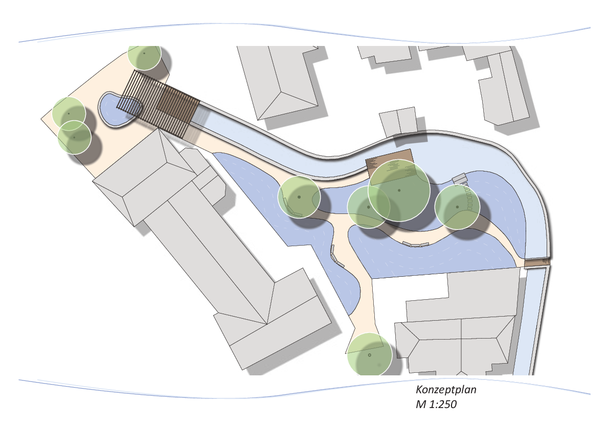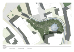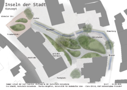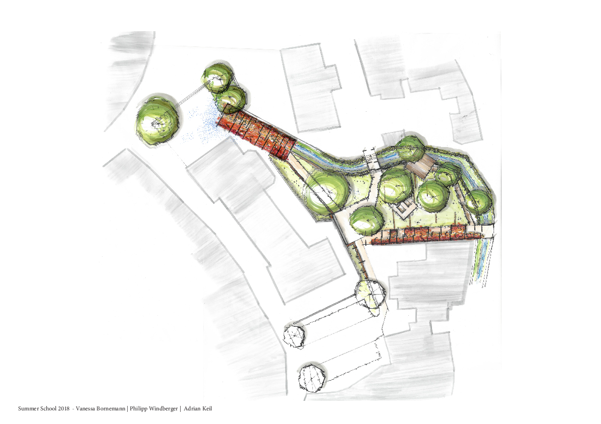 An fünf Tagen erarbeiteten die Studierenden gemeinsam ihre Entwürfe und Bepflanzungskonzepte für eine versteckte kleine Grünanlage im Herzen von Geisenheim. Entstehen soll ein Pocketpark entlang des städtischen Grünbachs, für den die Studierenden sich inspirieren ließen von üppiger tropischer Bepflanzung, dem Spiel von Licht und Schatten, Wellen, Inseln und Auen und Rheingautypisch von Weinbergen.