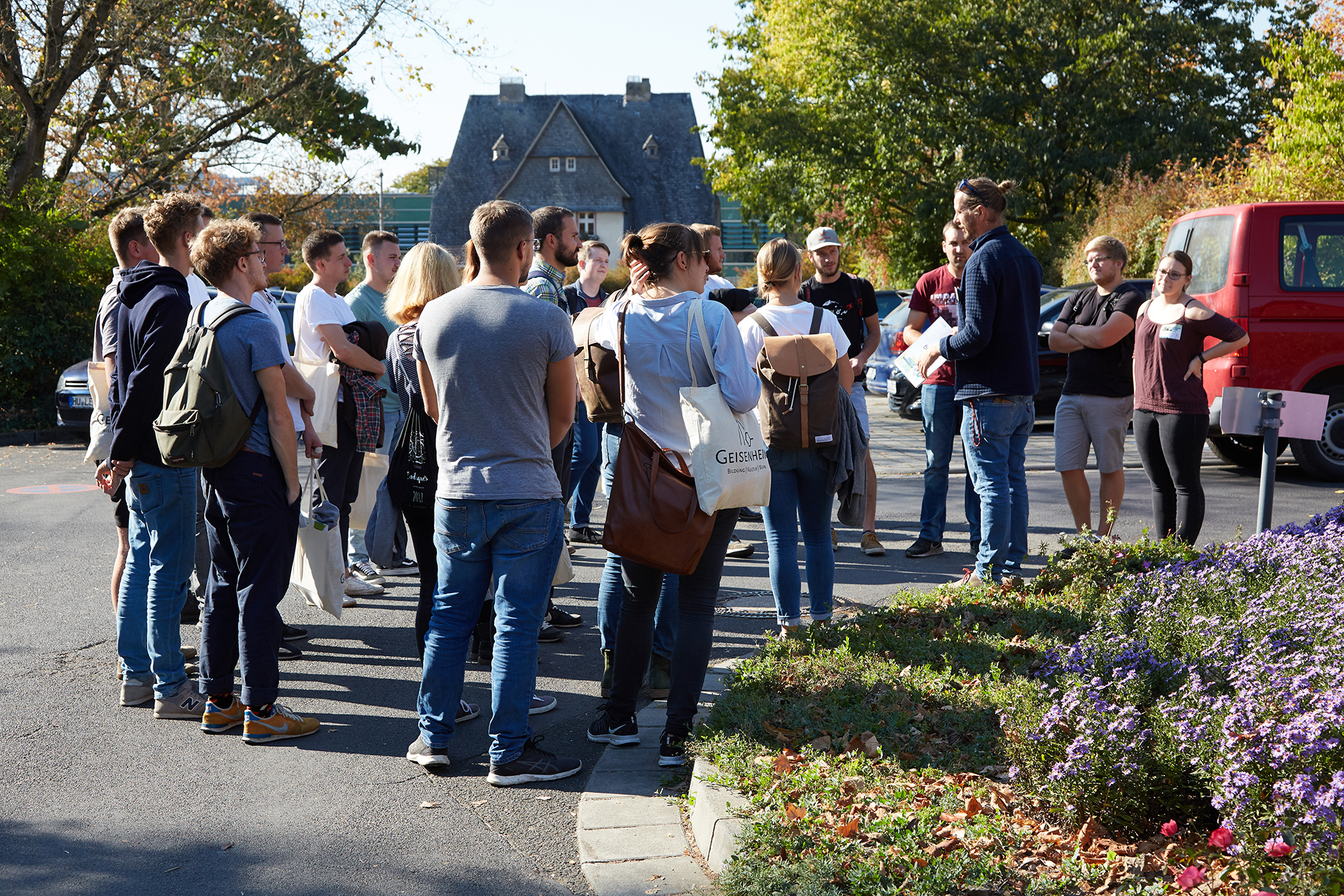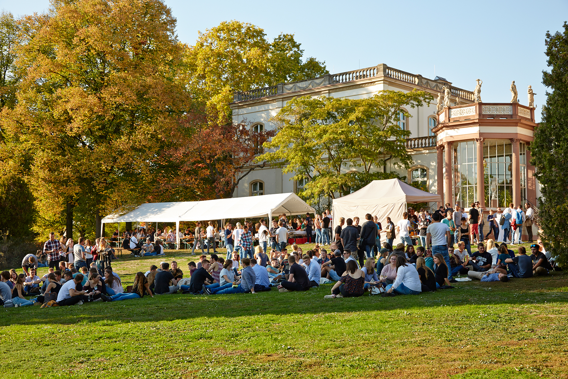 Nach der offiziellen Begrüßung, die für internationale Studierende simultan auf Englisch übersetzt wurde, konnten sich die neuen Studierenden dann auf dem Hochschulgelände über die Angebote vor Ort informieren: Der Hochschulsport, das Studentenwerk Frankfurt, das Sprachenzentrum und der AStA stellten sich unter anderem vor. Am Nachmittag führten Mitarbeiterinnen und Mitarbeiter aus allen Bereichen der Hochschule die Erstsemester über den Campus – von der FACE-Anlage über das Getränketechnologische Zentrum und die historischen Parkanlagen ging es zum Abschluss in die Villa Monrepos, wo die Studienanfänger ein Sektempfang der VEG erwartete.