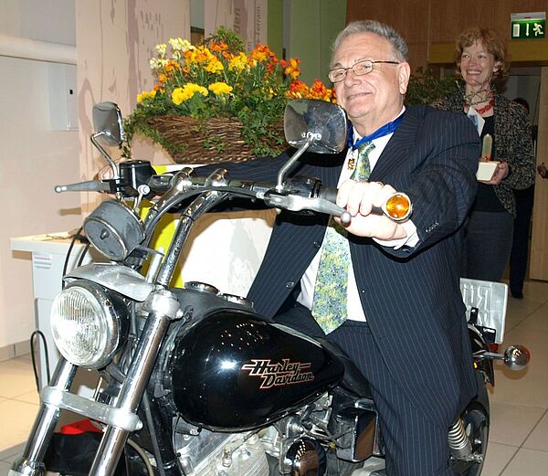 „Er hat auf unerforschtem Boden einen tiefen Eindruck hinterlassen…“ Dieser Satz, illustriert mit einer Fußspur in weicher Erde, hatte die Forschungsanstalt Geisenheim (FAG) gewählt, um ihren Direktor Klaus Schaller in den Ruhestand zu verabschieden. Tief beeindruckt wirkte auch die Hauptperson am Ende der dreistündigen akademischen Feier im Gerd-Erbslöh-Hörsaal. Schließlich hatte Schaller plötzlich nicht nur ein Ordensband um den Hals liegen, sondern saß obendrein probeweise auf einer Harley-Davidson. Eine mehrtägige Motorradreise schenkten ihm die Kollegen aus der FAG für die anbrechende Zeit als Pensionär.