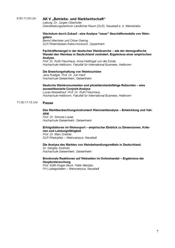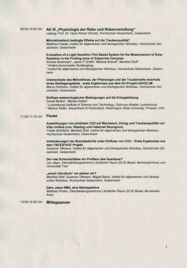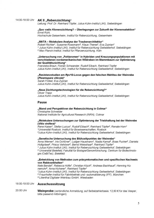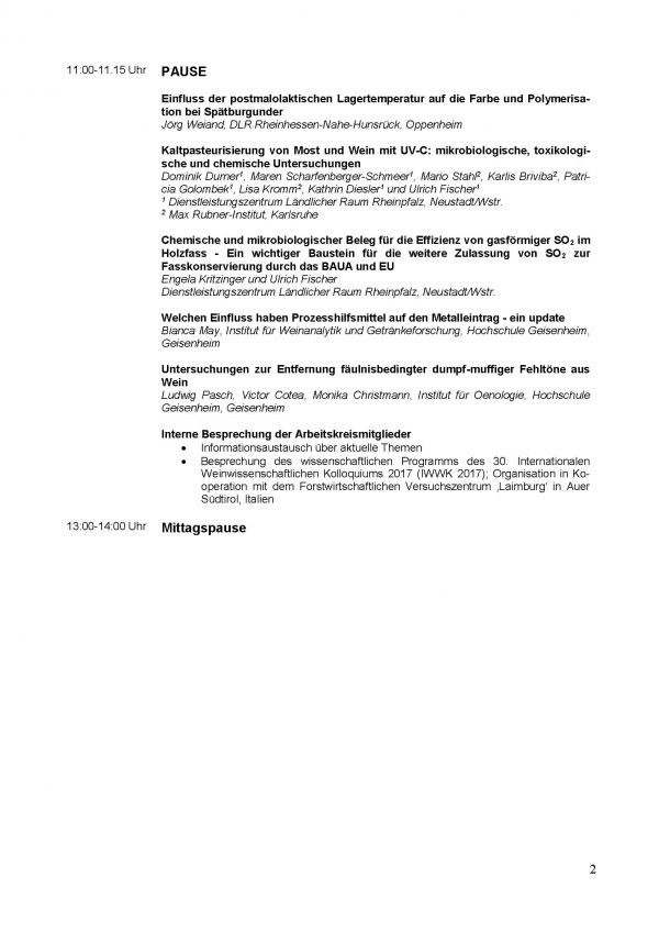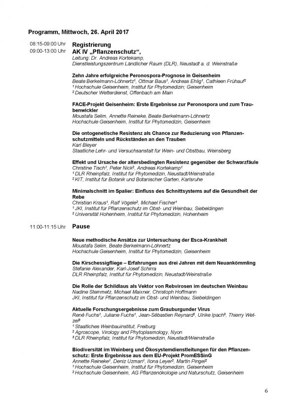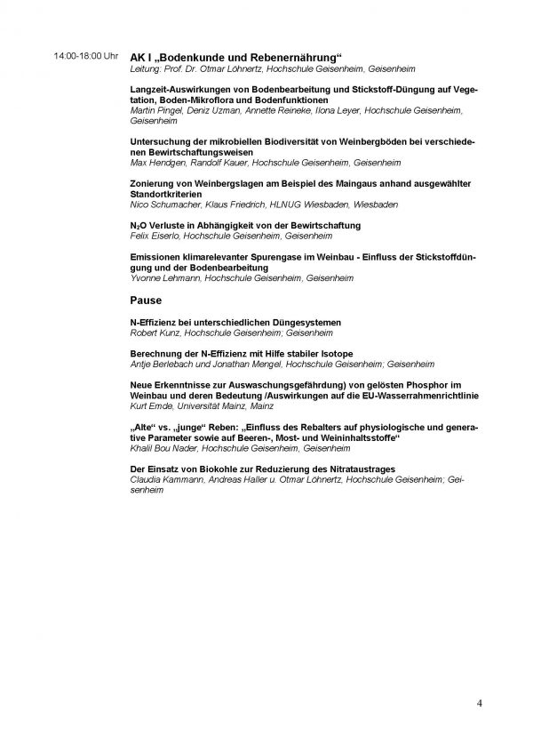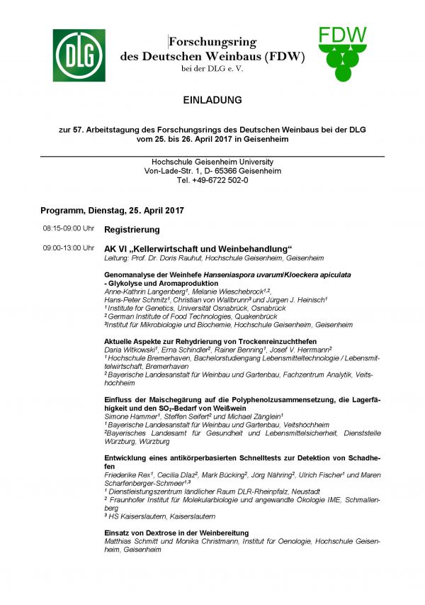 Am 25. und 26. April 2017 findet an der Hochschule Geisenheim die 57. Arbeitstagung mit folgendem Programm statt: