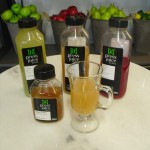 Schwerpunkt sind und bleiben vorerst aber die Saftmischungen. Sie werden in einem direkt an den Laden angeschlossen Raum hergestellt, in dem 5 Mitarbeiter in Nachtschichten Säfte pressen, welche dann am nächsten Tag unter Einhaltung der Kühlkette verkauft werden. Angeboten werden die Säfte in PET-Flaschen zu 250 und 520 ml. „Eigentlich wollten wir von vornherein auf Glasflaschen setzen, doch leider war kein Hersteller bereit, für die kleinen Mengen, welche wir anfangs benötigten, Glasflaschen herzustellen, daher haben wir uns für BPA–freie PET-Fläschchen entschieden.“, so Russo.