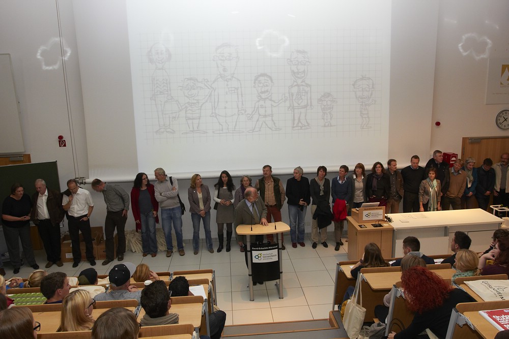 Bei der Erstsemestereröffnung platzte der Gerd-Erbslöh-Hörsaal aus allen Nähten. Mehr als 300 Erstsemester wurden nicht nur von der Hochschule durch Präsident, Vize-Präsident und Dozenten begrüßt, sondern auch von Geisenheims Bürgermeister Frank Kilian. Besonders gut kam bei den neuen Geisenheimerinnen und Geisenheimern die Erstsemestertasche voller Informationen und ebenso kleinen wie nützlichen Aufmerksamkeiten an.