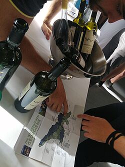 Insgesamt konnten die über 100 Gäste der GEORGIAN WINE FAIR knapp 50 verschiedene georgische Weine verkosten. Ziel war es, die große Diversität der Weine zu erleben – von im Qvevri gelagerten über klassisch ausgebaute Weine, internationale Rebsorten als auch viele autochthone Rebsorten der ältesten Weinkultur der Welt. Um den Studierenden den Einstieg in die komplexe Weinwelt Georgiens zu erleichtern, wurden die verschiedenen Verkostungsstationen von georgischen Studierenden betreut, die enthusiastisch Einblicke in den Weinbau des kleinen Landes am Fuße des Kaukasus gaben.