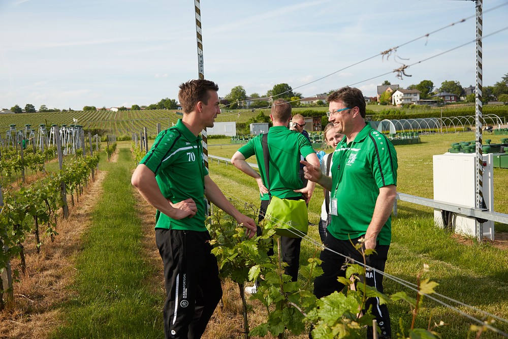 Auch der Kader der WEINELF bei der Europameisterschaft zeigt: Der harte Kern kommt nach wie vor aus Geisenheim. Vier Studierende der Hochschule Geisenheim – Christoph Eifel, Konstantin Gänz, Maximilian Stigler und Moritz Volke – standen genauso im Aufgebot wie acht waschechte Geisenheimer Alumni, allen voran Mannschaftskapitän Philipp Wittmann. Die Betreuerinnen der Mannschaften, die freiwilligen Helfer im Vorfeld und Verlauf der Winzer-EURO: Auch unter vielen von ihnen gab es – neben der Liebe zum Fußball und dem tollen Einsatz für das Event – eine Gemeinsamkeit: Alles Geisenheimer.