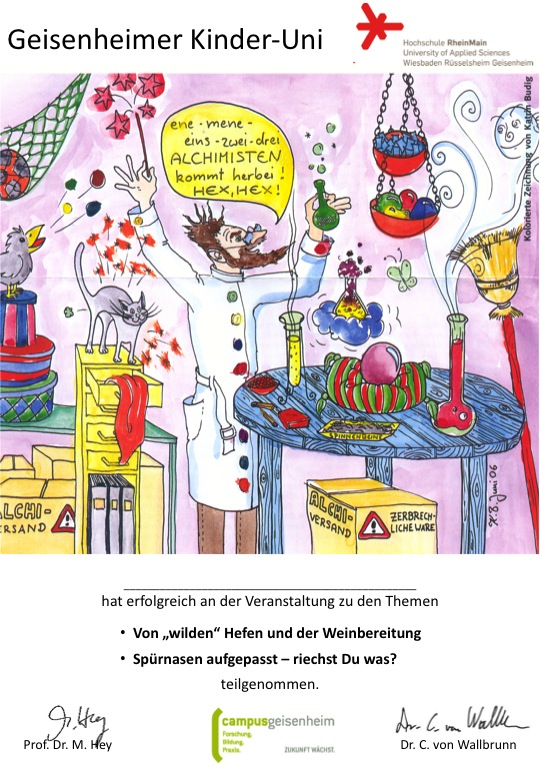 wer später Winzer werden will. Oder auch nur Weintrinker. In Geisenheim hat die alte, traditionsreiche Forschungsanstalt für Weinbau heute ihre Tore geöffnet für Grundschüler. Die Themen waren ganz schön anspruchsvoll: Hefe bei der Weinbereitung war das eine, und: Spürnasen aufgepasst – riechst du was? das andere. Der Vorlesungssaal in der Villa Monrepos war voll besetzt. Kleine 9 bis 11-Jährige haben ins Mikroskop geguckt und an kleinen Fläschchen geschnuppert