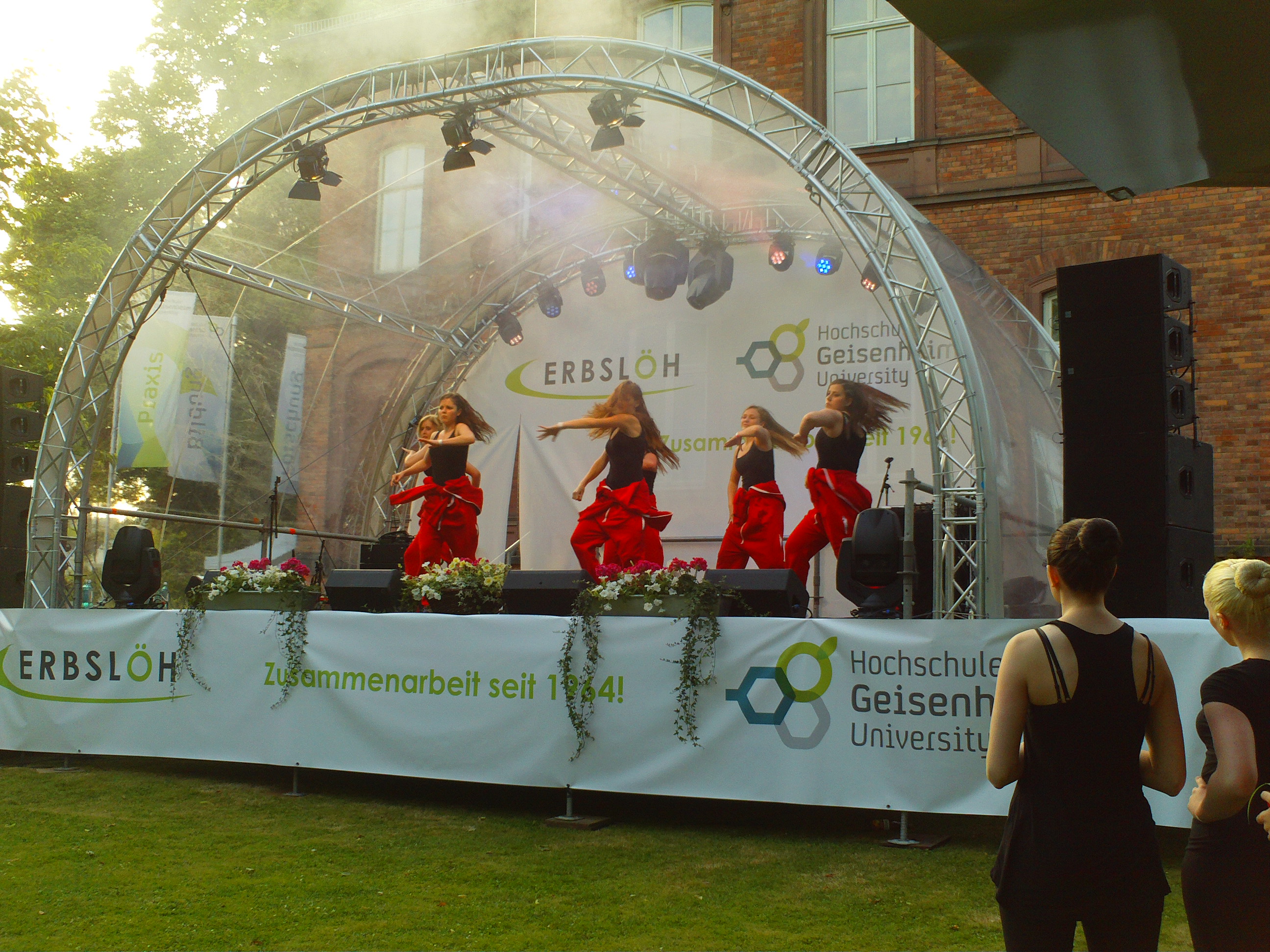 Am Freitag, den 14. Juni, fand die offizielle Gründungsfeier statt. Viele Helfer bauten im Park des Campus das Festgelände auf. Die große Bühne vor dem Verwaltungsgebäude ließ auf einen spannenden Abend hoffen. Der dann auch kommen sollte. Sébastien Loison und sein Team von der Mensa der Hochschle sorgten am Grill für leckeres Essen, weitere Helfer schenkten Getränke aus oder waren mehr im Hintergrund aktiv.