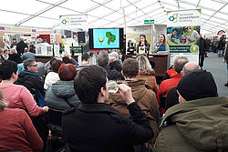 Neben dem Indoor-Weinberg mit den Rebsorten Riesling, Spätburgunder, Müller-Thurgau und Silvaner verführte das Aromarad am Stand der Hochschule Geisenheim Besucherinnen und Besucher der Messe daneben zum Schnuppern und Erraten von unterschiedlichen Weinaromen. Diejenigen, die wissen wollten, welchen Einfluss die Umgebungsfarbe auf den Geschmack des Weines hat, und ob in einer blauen Umgebung eher die Fruchtigkeit oder die Säure zu schmecken ist, konnten dies am Hochschul-Stand direkt selbst ausprobieren.