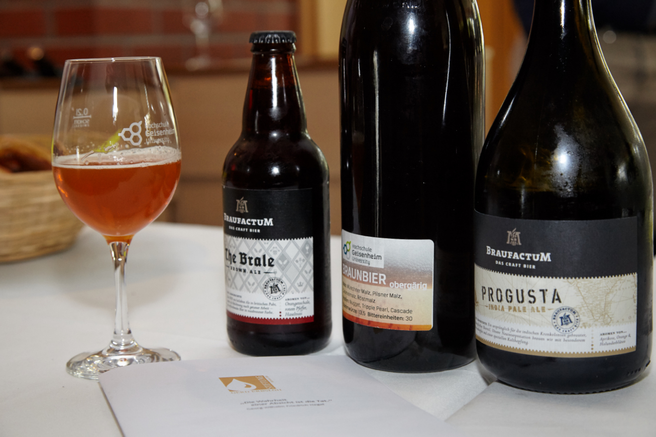 Dr. Marc Rauschmann, Braumeister und Geschäftsführer von „Die Internationale Brau-Manufacturen GmbH“ macht in seinem Gastvortrag deutlich, worauf eine moderne Getränketechnologie aufbauen muss, nämlich Experimentierfreude und Innovation. Seit nunmehr 5 Jahren entwickelt und produziert er mit „BraufactuM“ handwerklich gefertigte Biere höchster Güte. Und auch das exklusive Design, die Produktpräsentation und nicht zuletzt die Preisstellung grenzen „Progusta“, „The Brale“ & Co deutlich von dem geschmacklichen Einerlei auf dem deutschen Markt ab. Die Nähe zum Wein ist dabei bewusst gewollt und inszeniert: „Bei uns heißen Winzer Braumeister“.