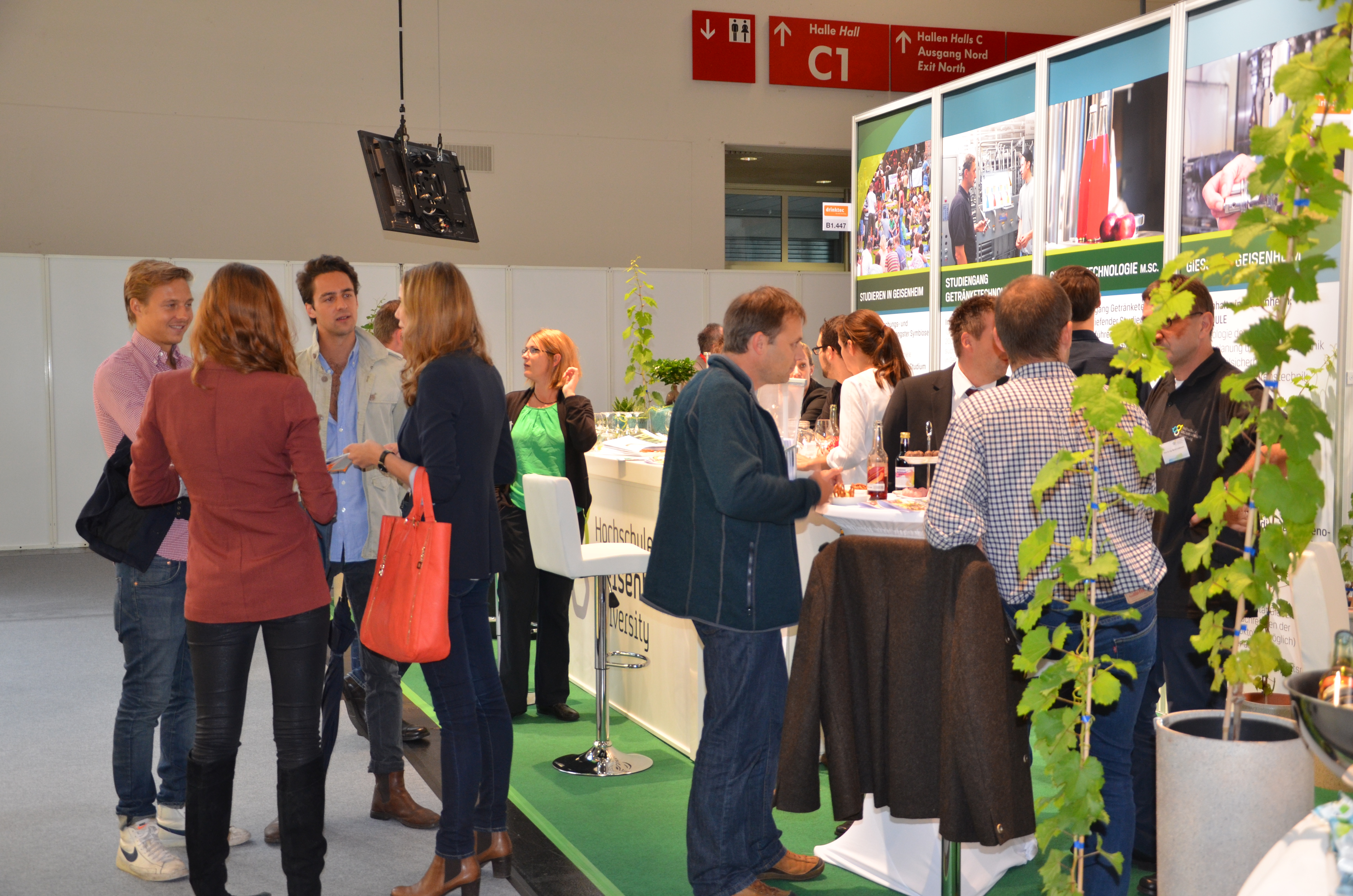Gleich zum Eingang des Messegeländes präsentiert sich der Stand der Hochschule Geisenheim in guter Lage und lädt zu einem spannenden Messebesuch ein. „Das ist ein erfolgreicher Start für die Hochschule Geisenheim…, die sich in diesem Jahr zum ersten Mal auf der drinktec präsentiert. Die Resonanz der Messebesucher ist durchweg positiv, sowohl bei Studierenden, als auch bei Verantwortlichen aus der Industrie, die die Präsenz der Hochschule Geisenheim sehr begrüßen. Besonderes Highlight ist der Geisenheimer Treff ab 18 Uhr, nach dem offiziellen Ende des Messetages. Nicht nur Besucher, sondern auch andere Aussteller genießen den Messeausklang zwischen Weinreben und Geisenheimer Riesling“, freut sich Prof. Dr. Ing. Bernd Lindemann. Die drinktec dauert noch bis Freitag und am Geisenheimer Stand erwartet die Besucher weiterhin viel Information, viele gute Gespräche, Campunade, Geisenheimer Trüffel, Geisenheimer Fruchtsaft, Geisenheimer Wein … und ein tolles Team! Schauen Sie einfach mal vorbei in Halle B1, 447! Wir sehen uns!