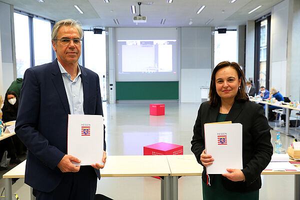 Wiesbaden. Hessens Wissenschaftsministerin Angela Dorn und die Leitungen der 14 Hochschulen des Landes haben individuelle Zielvereinbarungen für die kommenden Jahre unterzeichnet. Sie legen für jede Hochschule konkrete Ziele fest, deren Erfüllung zum Teil für die Finanzierung durch das Land relevant ist. Vorangegangen war ein Strategieprozess, in dem die Hochschulen festgelegt haben, auf welche Ziele sie sich besonders konzentrieren wollen. Zentrale Elemente für alle sind dabei unter anderem eine bessere Betreuungsrelation, der Ausbau der dauerhaften Beschäftigung, die Erhöhung des Studienerfolgs und eine Stärkung der Nachhaltigkeit in allen Handlungsbereichen.