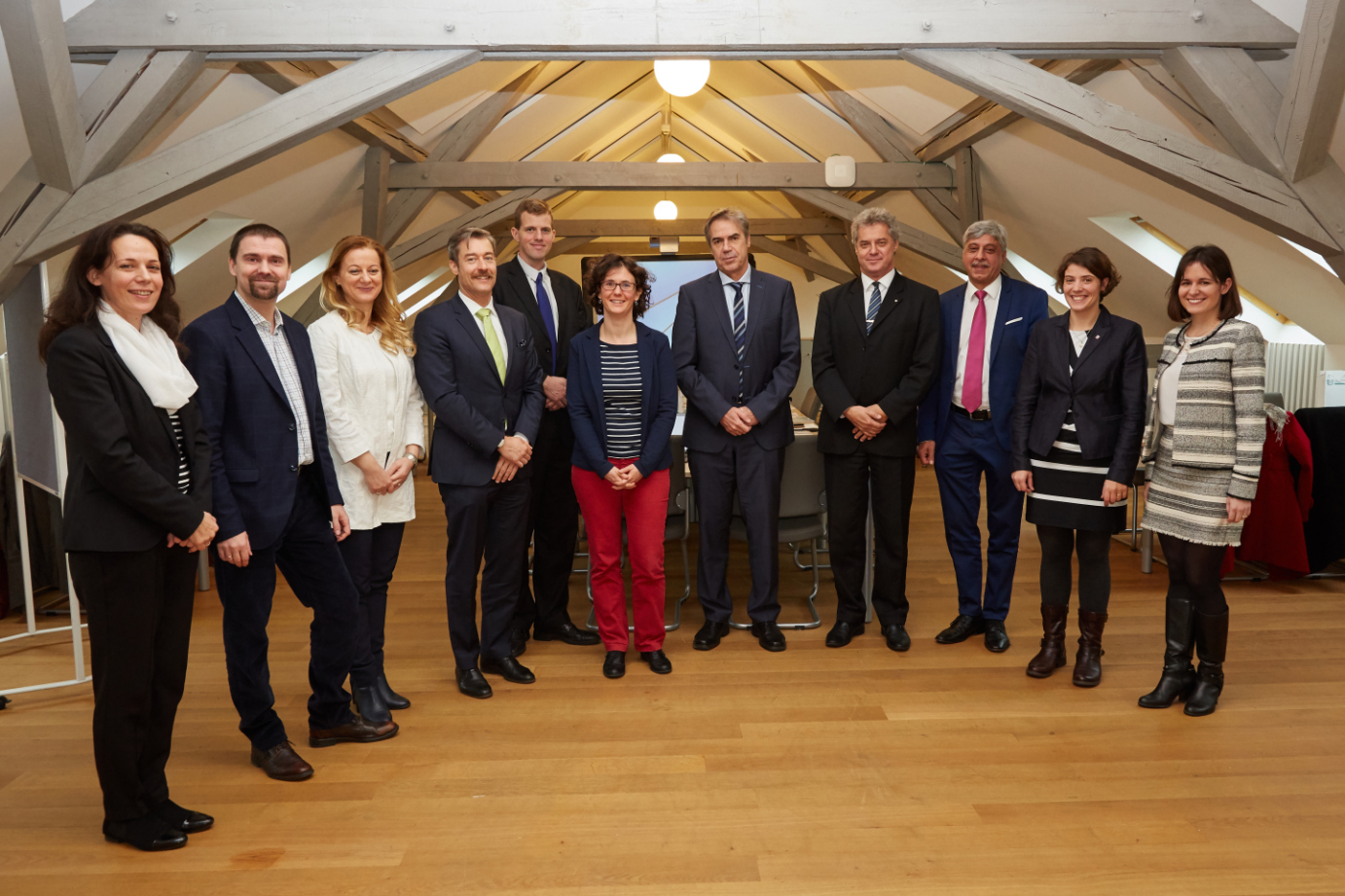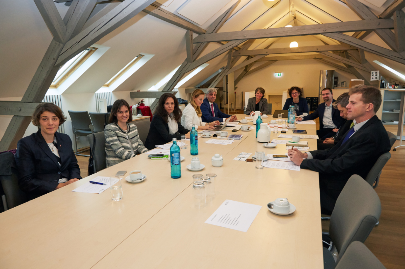 Aus diesem Grund luden der Präsident der Hochschule Geisenheim Prof. Dr. Hans Reiner Schultz und Prof. Dr. Gergely Szolnoki, der selbst in Gödöllö studiert hat, den Rektor Prof. Dr. Tőzsér János, den Pro-Rektor Prof. Dr. Palkovics László sowie Nyitrainé Dr. Sárdy Diána, Dekan der Fakultät für Garten- und Weinbau, und Dr. Tarr Zsuzsanna, die Leiterin des International Office der SZIU, nach Geisenheim ein. Hier tauschten sie sich über Kooperationsmöglichkeiten in Lehre und Forschung aus. Die Teilnahme zweier Attachés der ungarischen Botschaft in Berlin – Pászti-Márkus Eszter und Illés Bálint –, des ungarischen Generalkonsuls aus Düsseldorf Szegner Balázs sowie Christina Reder-Stypka, Referentin des Hessischen Wirtschaftsministeriums, belegen die große Bedeutung, die diesem Treffen auch seitens der Politik beigemessen wurde.