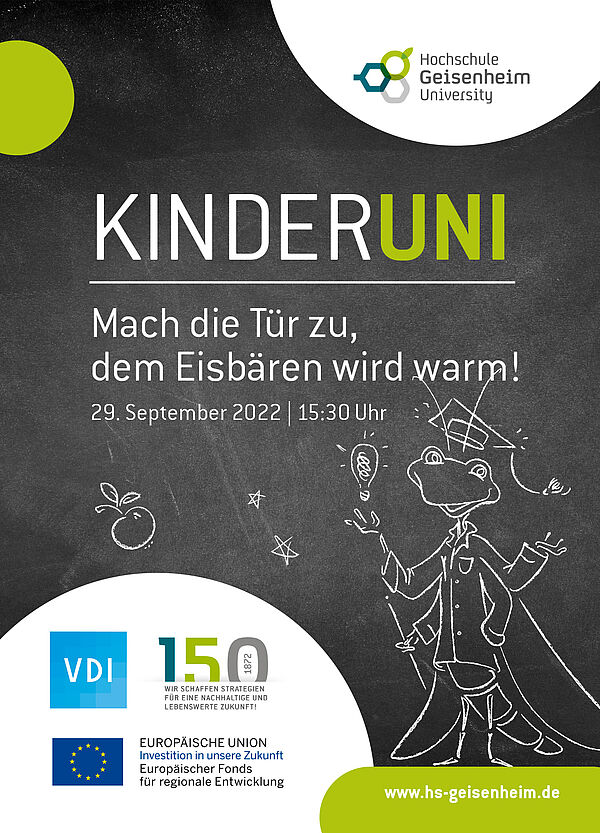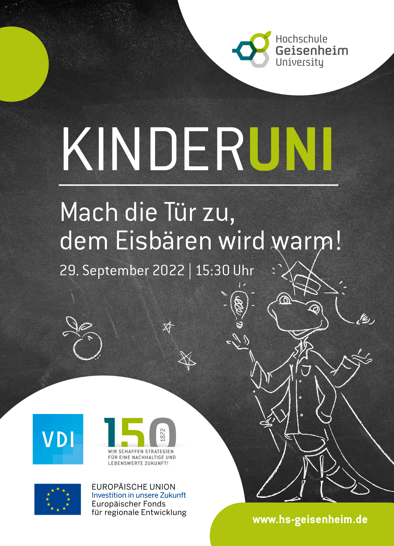 Gemeinsam mit dem Verband Deutscher Ingenieure (VDI) Rheingau hat die Hochschule Geisenheim im Rahmen des Jubiläumsjahres anlässlich ihres 150-jährigen Bestehens eine KINDERUNI ins Leben gerufen. Ziel ist es, Kinder für Natur- und Ingenieurwissenschaften zu begeistern und ihnen zu zeigen, dass Wissenschaft kinderleicht sein kann und Teil des Alltags ist.