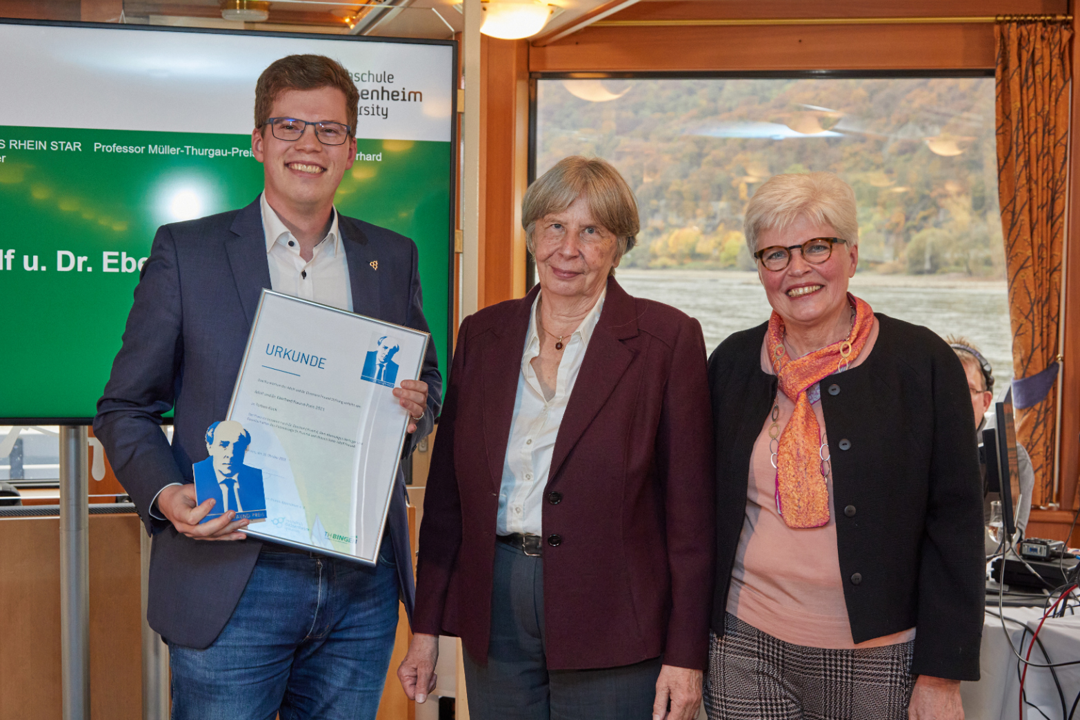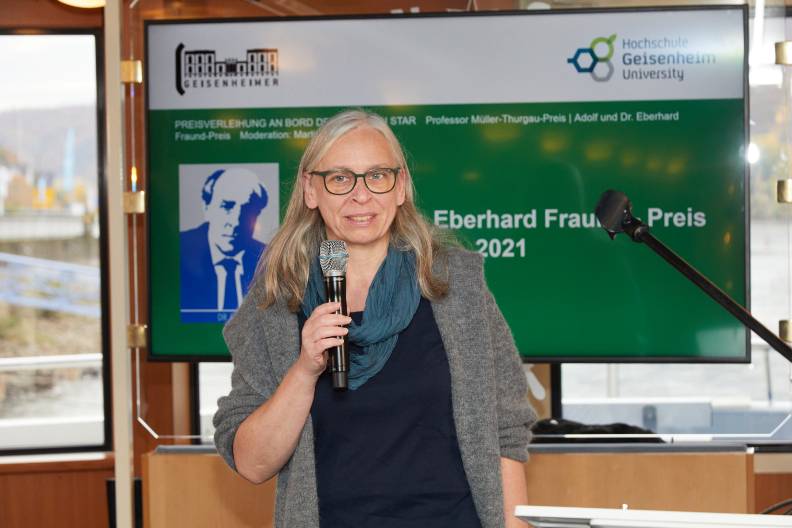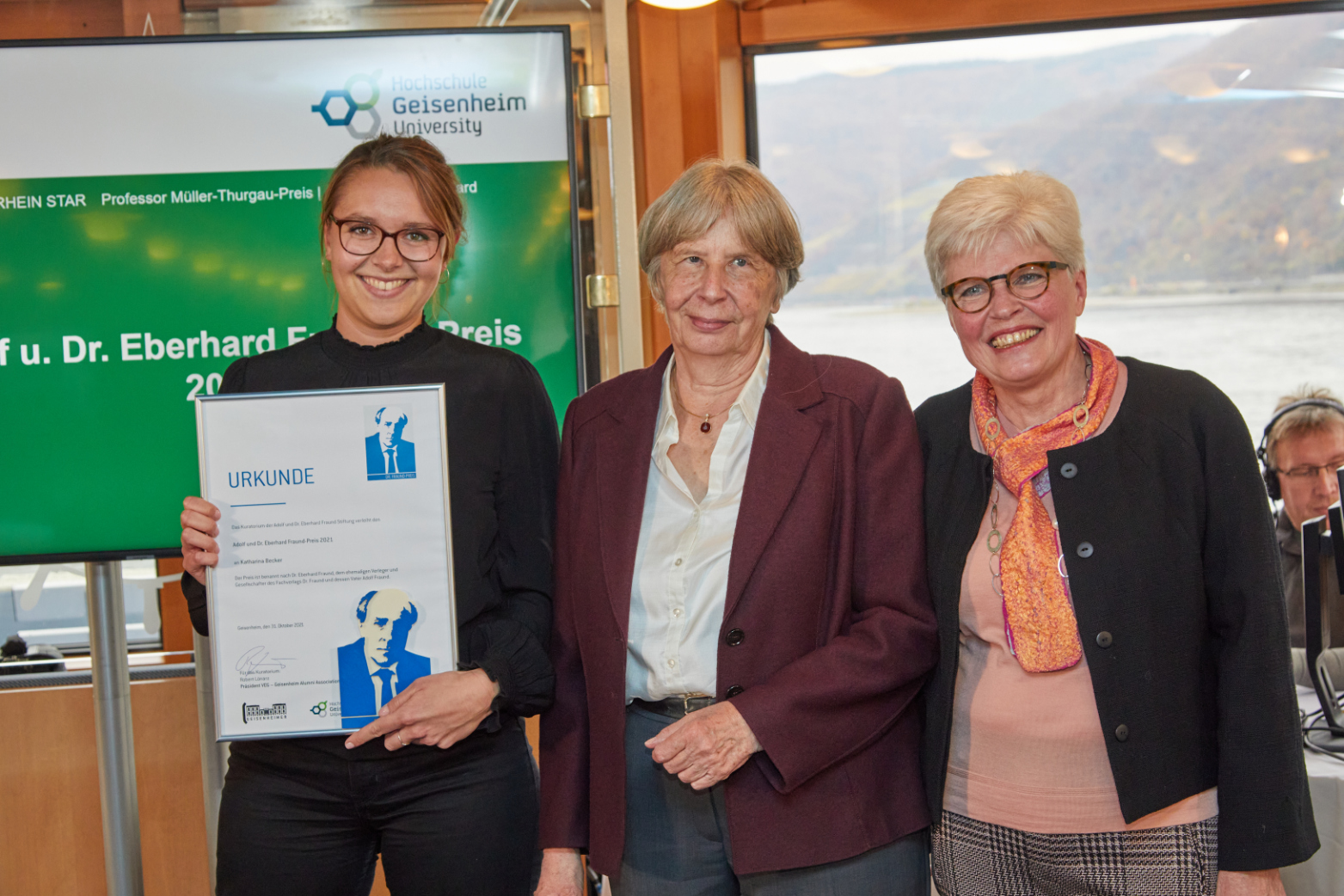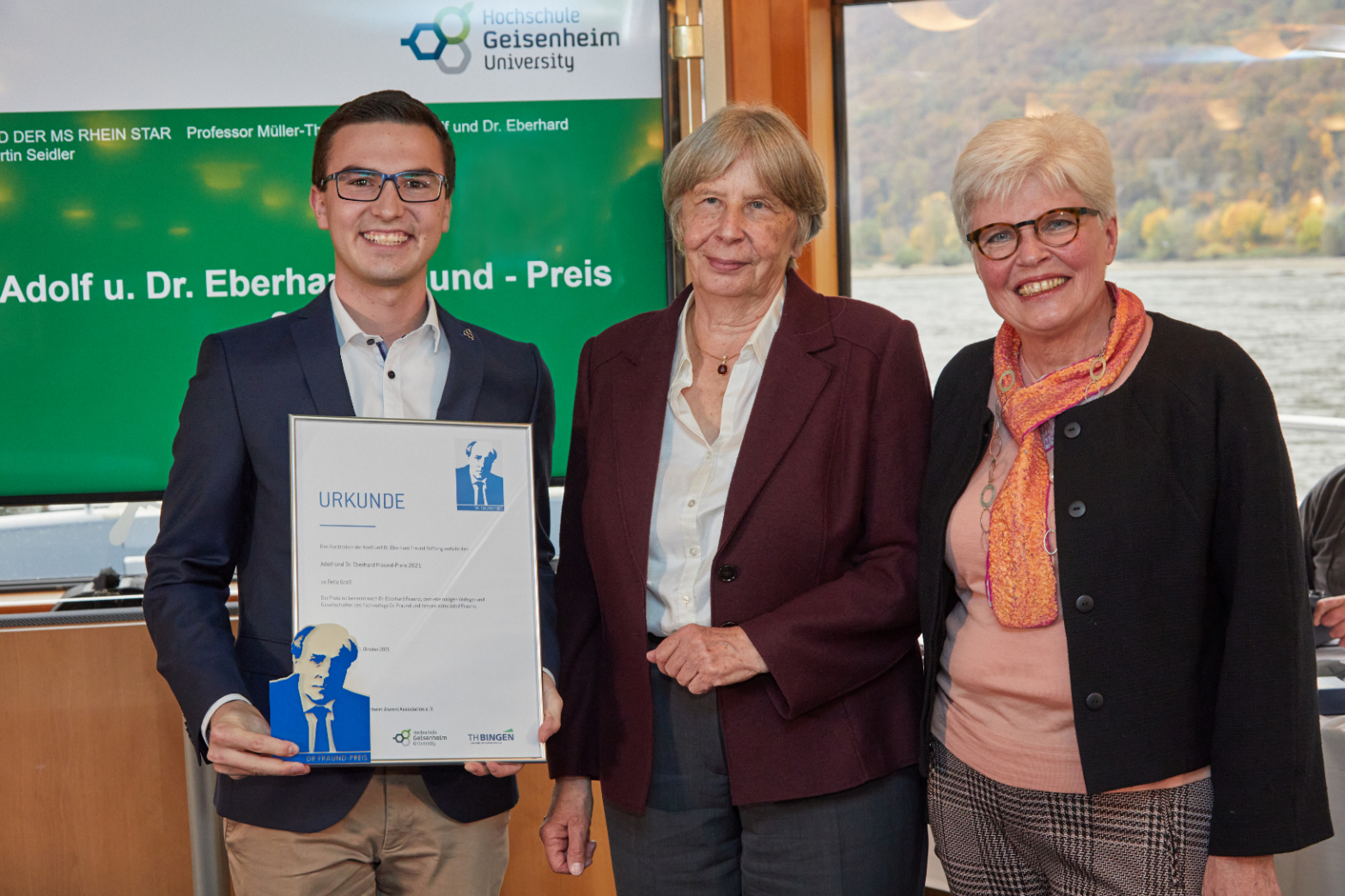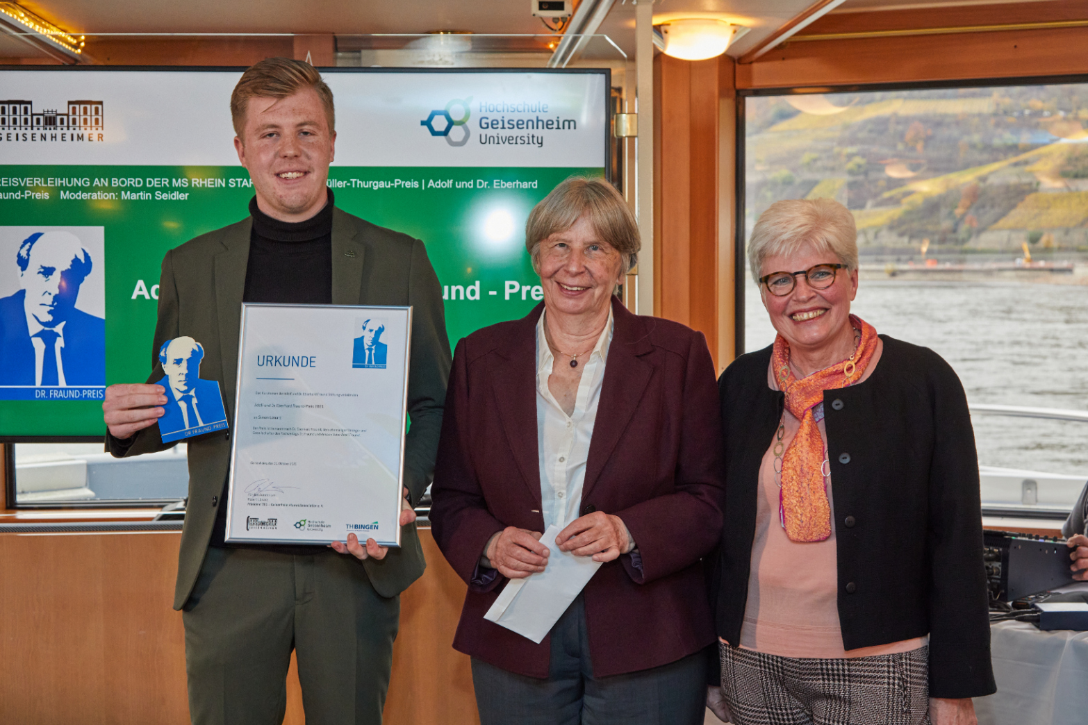 Die grüne Branche spielt angesichts von Klimawandel und Ressourcenknappheit eine zentrale Rolle für unsere Gesellschaft, insbesondere bei der nachhaltigen Produktion hochwertiger Lebensmittel. Um die Bedeutung einer zukunftsorientierten Ausbildung in diesem Bereich sichtbar zu machen und angehende Führungskräfte zum weiteren Wissenserwerb zu motivieren, hat die Hochschule Geisenheim gemeinsam mit Stifterin Sibylle Fraund Ende 2020 den „Adolf und Dr. Eberhard Fraund“-Preis ins Leben gerufen. Am 31. Oktober 2021 wurde der Preis an Bord der MS Rhein Star erstmals vergeben.