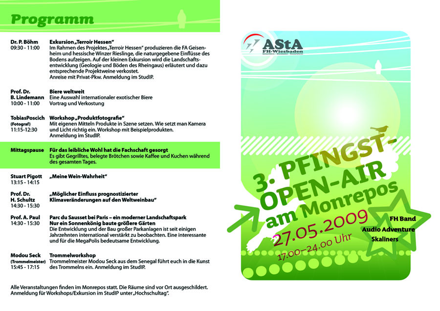 Der Geisenheimer Asta-Vorstand mit Anne Plaschke und Daniel Panytsch haben ein tolles Programm auf die Beine gestellt. Anschließend gibt es zum 2x das große Fest im Park der Villa Monrepos.