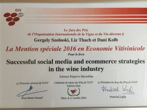 Dr. Gergely Szolnoki, Wissenschaftler am Institut für Betriebswirtschaft und Marktforschung der Hochschule Geisenheim, hat am 17. Oktober den OIV-Buchpreis 2016 in der Kategorie Wirtschaft erhalten. Ausgezeichnet wurde die gemeinsame Veröffentlichung von Szolnoki mit den Co-Editoren Dr. Liz Thach von der Sonoma State University und Dani Kolb von Kellen Europe „Successful Social Media & Ecommerce Strategies in the Wine Industry“. Die Urkunde erhielt das Trio aus den Händen von OIV-Präsidentin Monika Christmann und dem Generalsekretär der OIV, Jean-Marie Aurand. Das englischsprachige Buch, das im Palgrave Verlag, New York, erschienen ist, wurde sowohl für Praktiker als auch für Profis verfasst und behandelt Themen von der aktuellen Situation der sozialen Medien über elektronische Mund-zu-Mund-Propaganda und Crowdsourcing bis hin zu Weintourismus & Web 2.0.