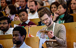 Der Staatssekretär im Hessischen Landwirtschaftsministerium, Daniel Köfer, nannte in seinem Grußwort vor Ort die Herausforderung der Klimaanpassung im Agrarbereich „eine Mammutaufgabe“. Dabei komme es vor allem auf eine enge Zusammenarbeit zwischen Wissenschaft und Wirtschaft an. „Diese notwendige Vernetzung geschah hier bei der German Plant Breeding Conference in Geisenheim. Dafür bin ich sehr dankbar“, sagte Köfer.